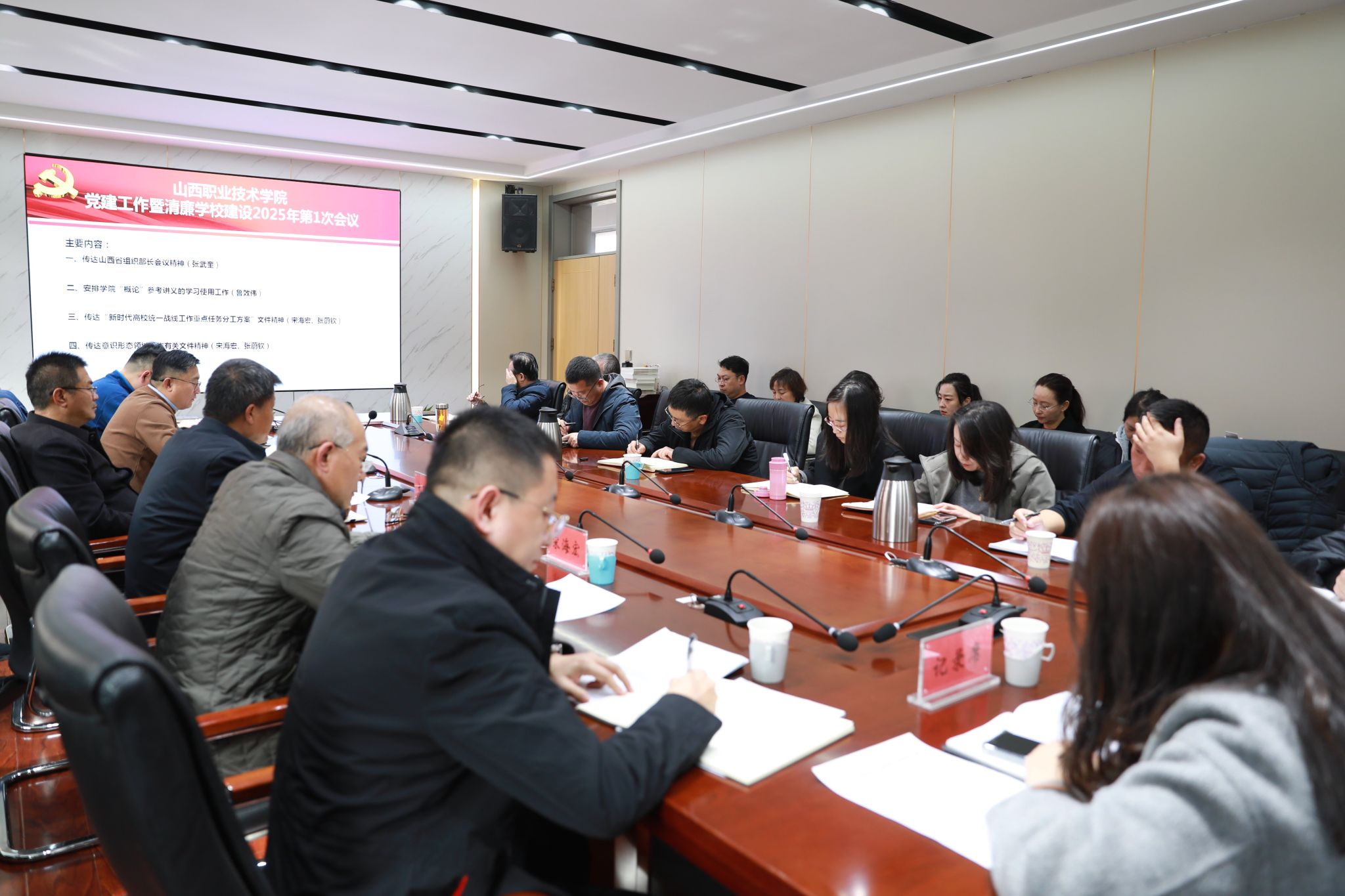 2月28日下午,学院2025年度第二次党建工作暨清廉学校建设例会在坞城校区实训楼二层会议室召开,会议由学院党委副书记尤陶江主持,学院纪委书记牛惠斌出席会议 八戒影视,党政办公室,纪委办公室,组织人事部,宣传统战部等部门相关人员,各校区党工委,各党总支负责同志参加会议。