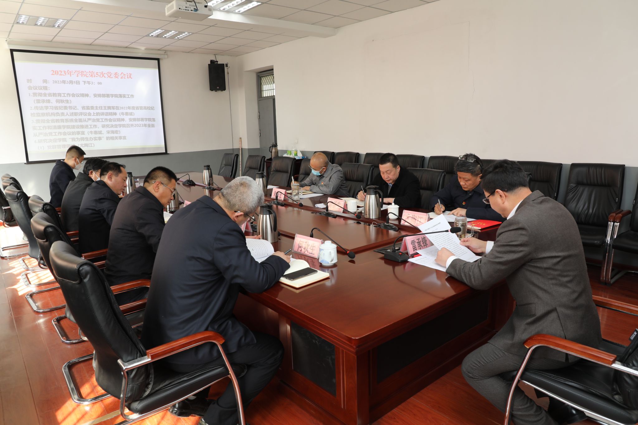 3月5日,学院党委书记雷承锋主持召开2023年第五次党委会议,会议贯彻落实全省教育工作会议精神 八戒影视,安排部署学院工作,全体党委委员参加会议,相关部门负责同志列席会议。